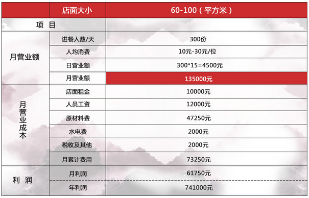 注:此分析是根据我们20多家门店平均费用核算出来,根据区域不同消费水平高低不一,此分析只供参考。